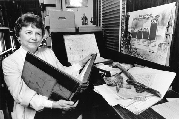 Enter librarian Gladys Hansen who, at the age of seventeen, was put in charge of the library’s California collection. Here, she began to research the identities of those who were killed or went missing during the disaster.